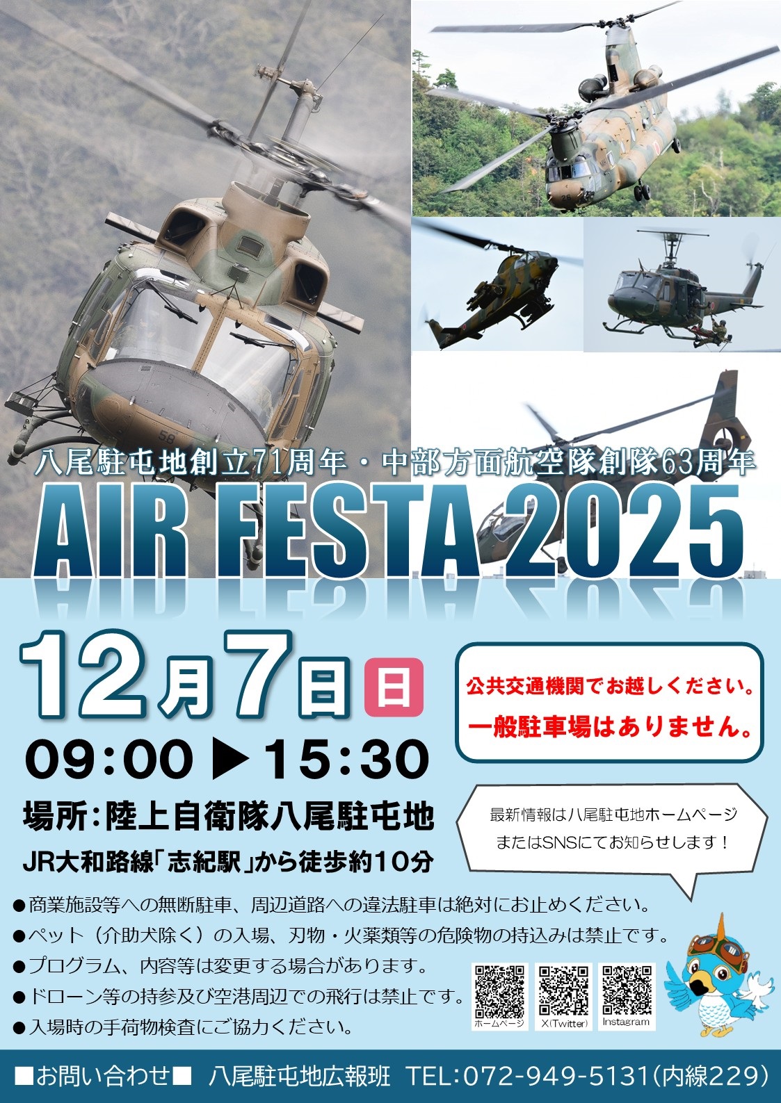 八尾駐屯地 創立71周年・中部方面航空隊 創隊63周年記念行事 エアーフェスタ2025(大阪府) - 2025年12月14日(日) ※要応募(2025/11/10まで)