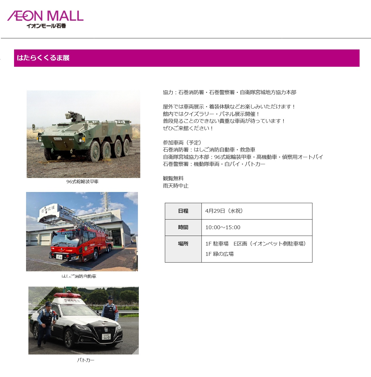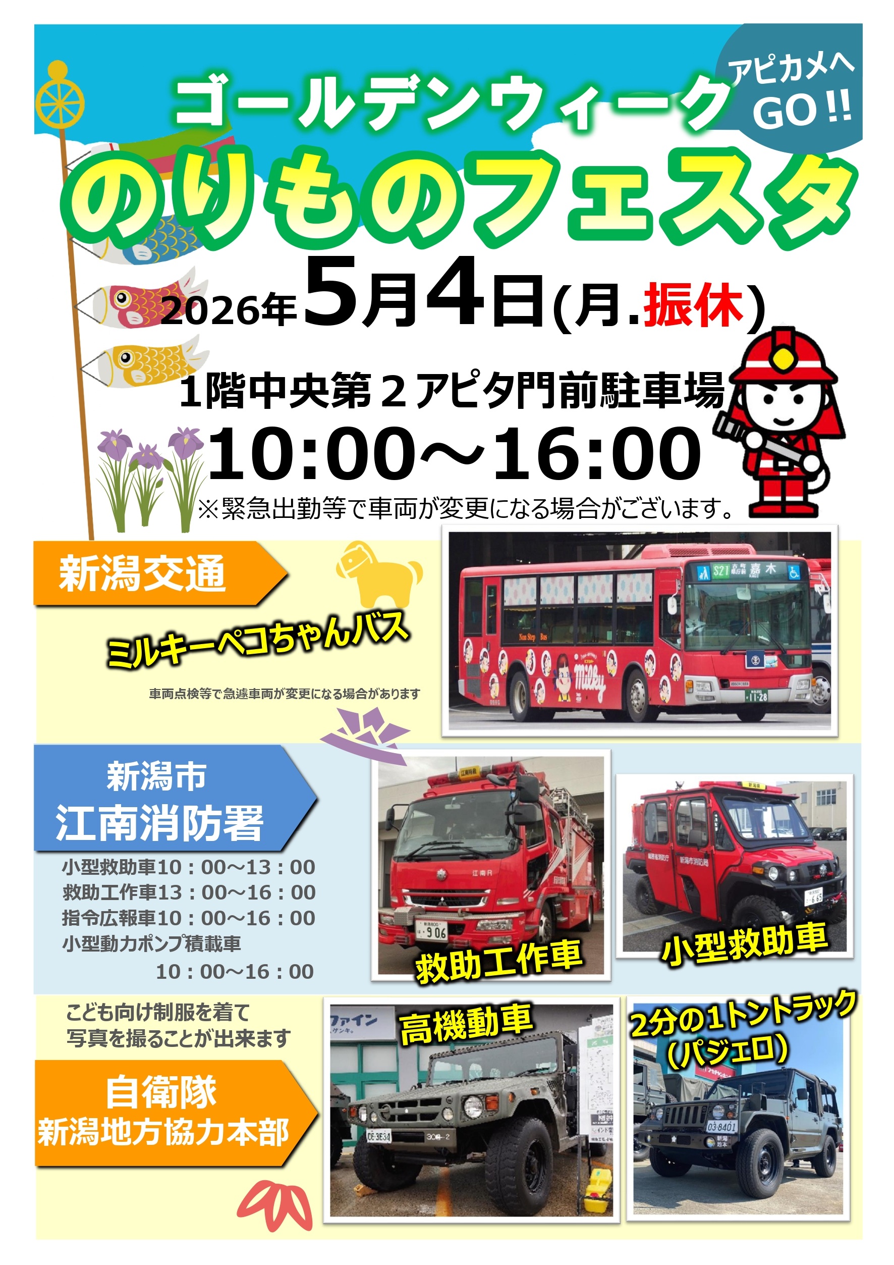 のりものフェスタ2026 in アピタ新潟亀田店(自衛隊・消防車両等展示)(新潟県) - 2026年5月16日(土) 開催予定