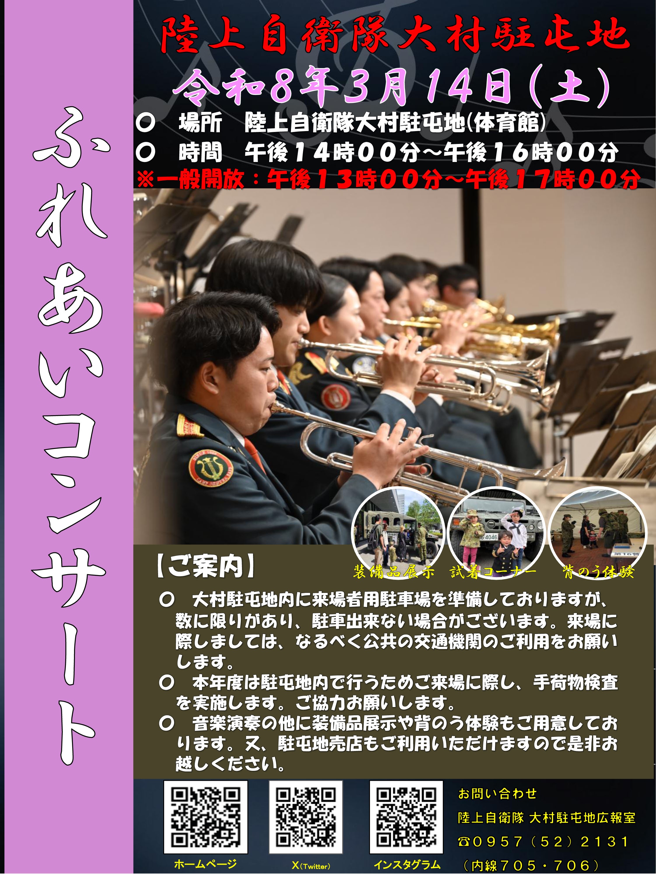 令和7年度 陸上自衛隊 大村駐屯地 ふれあいコンサート(駐屯地一般開放)(長崎県)