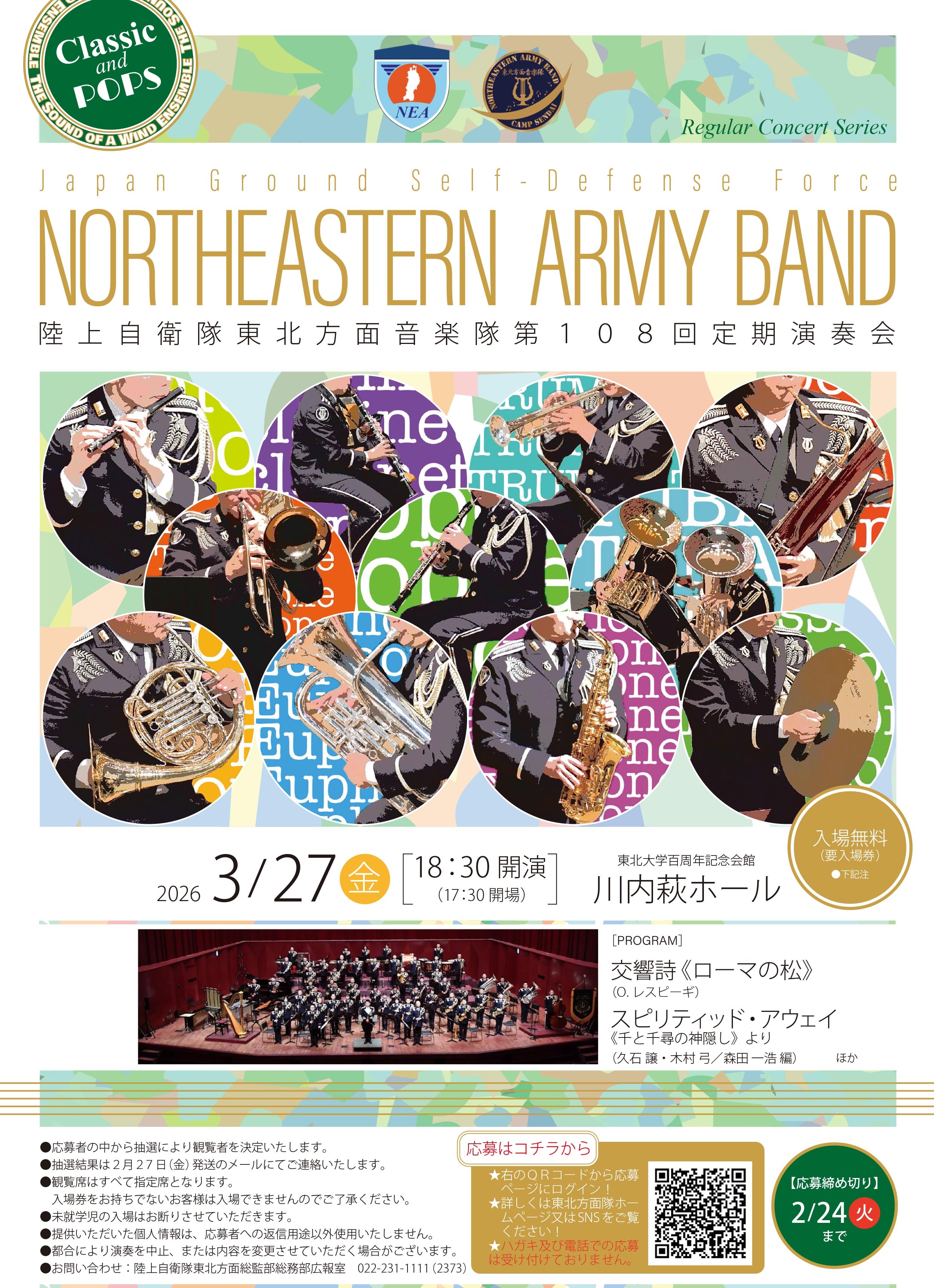 陸上自衛隊 東北方面音楽隊 第108回定期演奏会(宮城県)