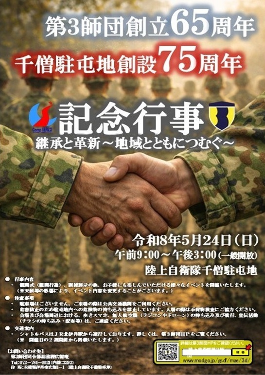 第3師団 創立65周年・千僧駐屯地 創設75周年記念行事(兵庫県) - 2026年5月31日(日) 開催予定