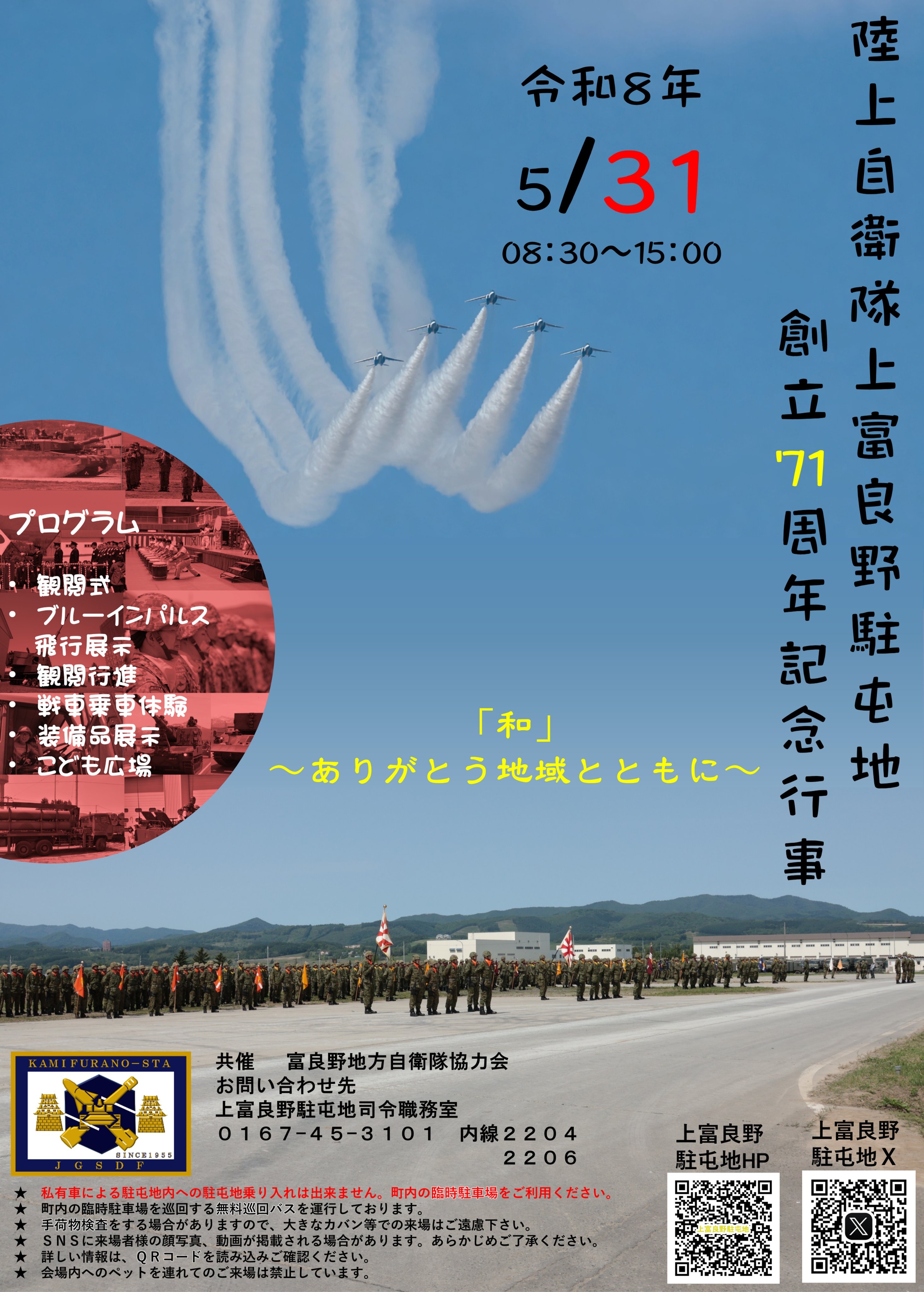 陸上自衛隊 上富良野駐屯地 創立71周年記念行事(北海道) - 2026年6月21日(日) 開催予定