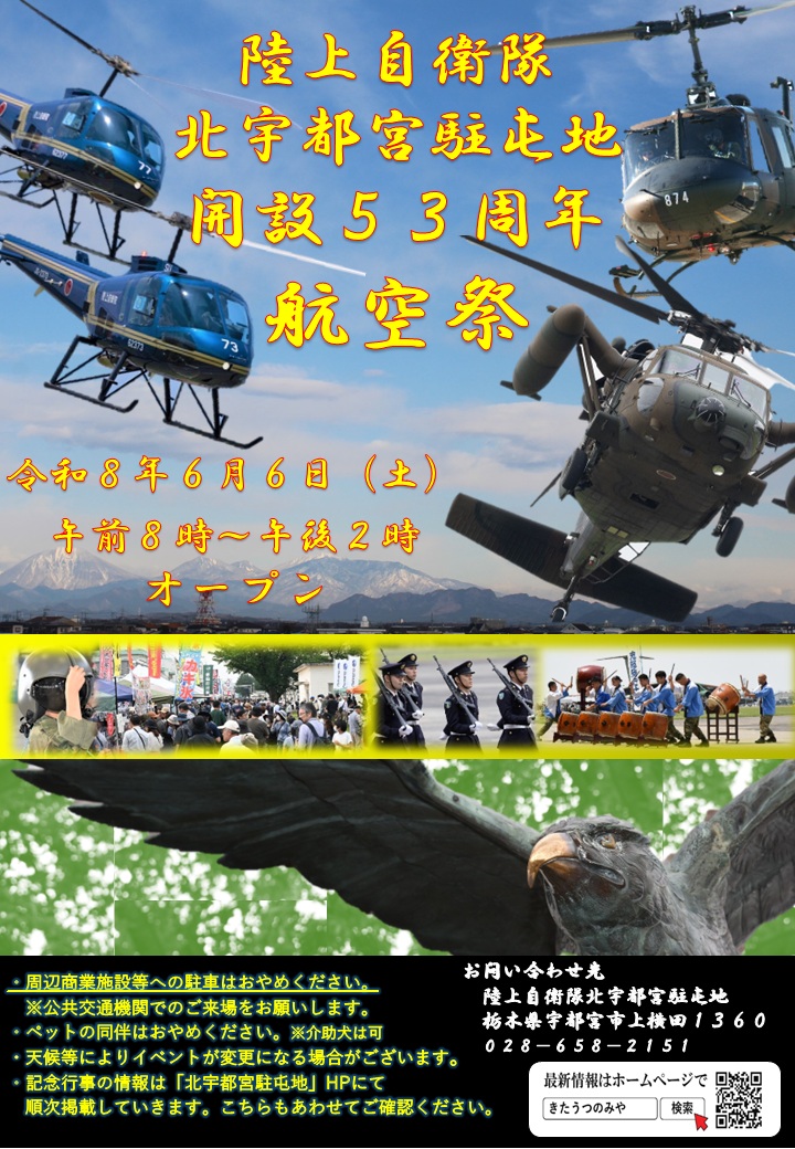 陸上自衛隊 北宇都宮駐屯地 開設53周年航空祭(栃木県) - 2026年6月7日(日) (