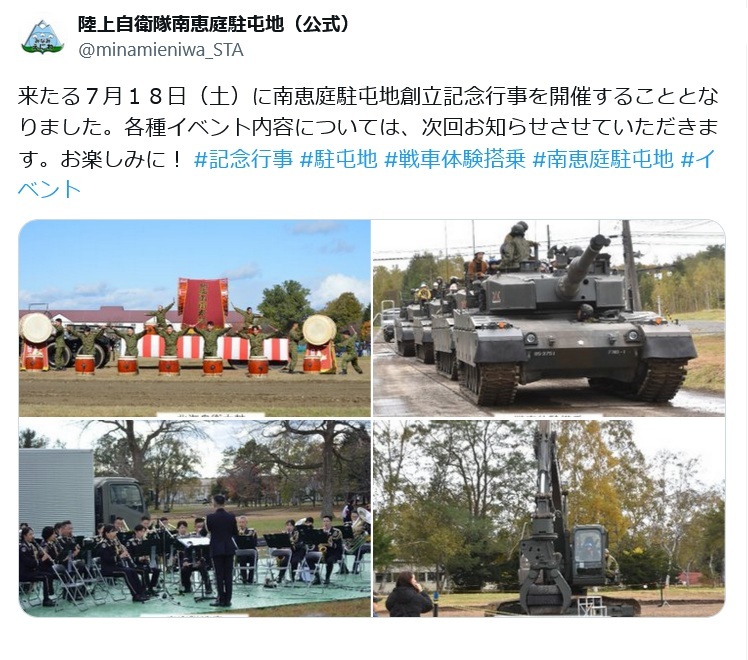南恵庭駐屯地 創設74周年・第3施設団 創隊65周年記念行事(北海道) - 2026年9月20日(日) 開催予定