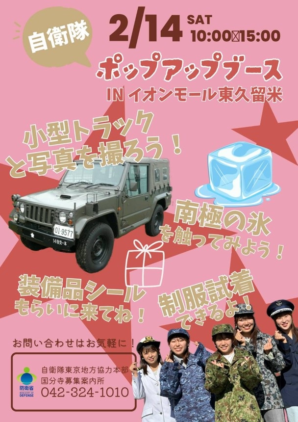自衛隊ポップアップブース2026 in イオンモール東久留米 東京地方協力本部(東京都東京都) - 2026年2月28日(土) ※要応募(2026/2/8まで)