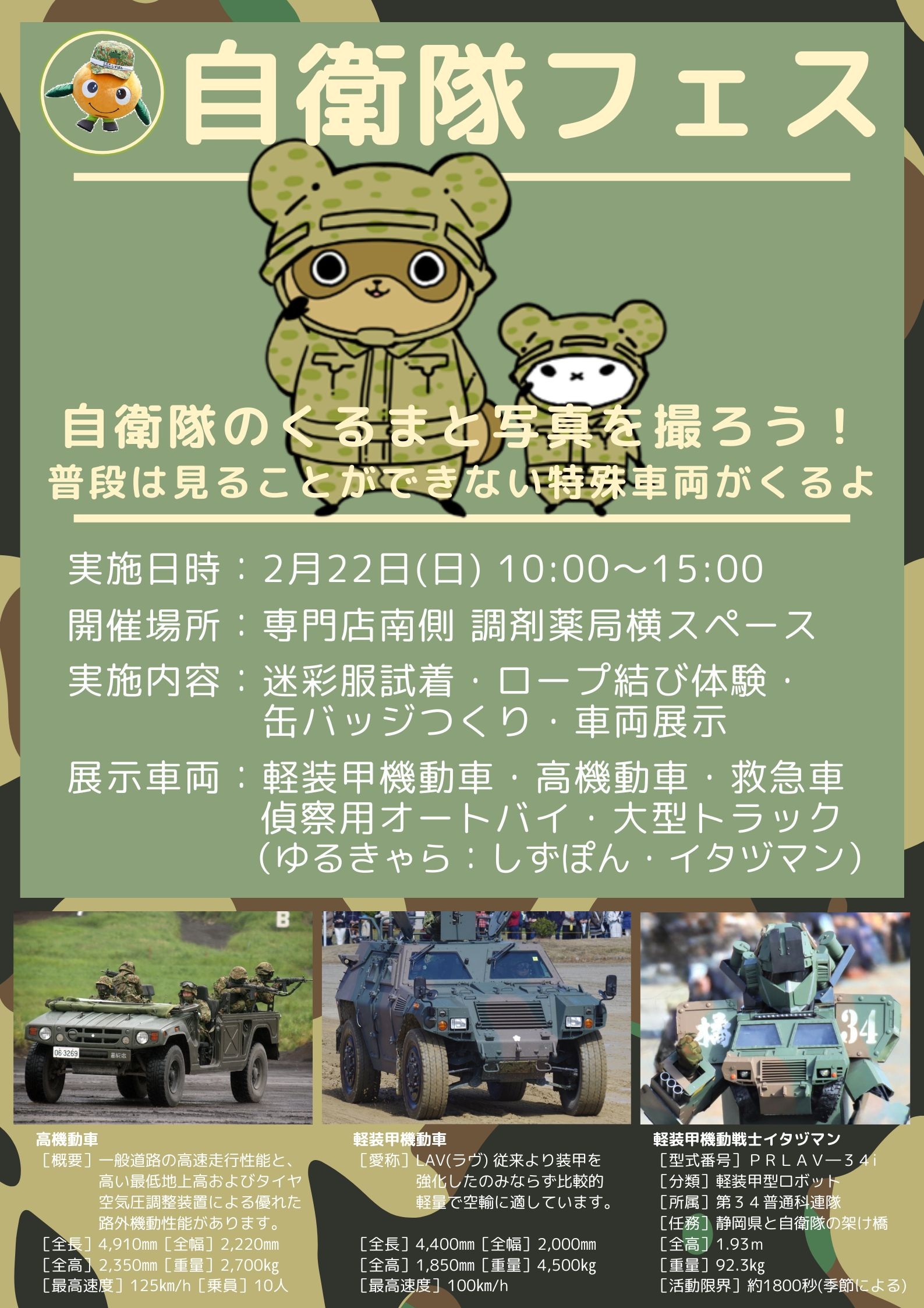 自衛隊冬フェス2026 in イオンモール富士宮 静岡地方協力本部(静岡県) - 2026年3月7日(土)・8日(日) 開催予定