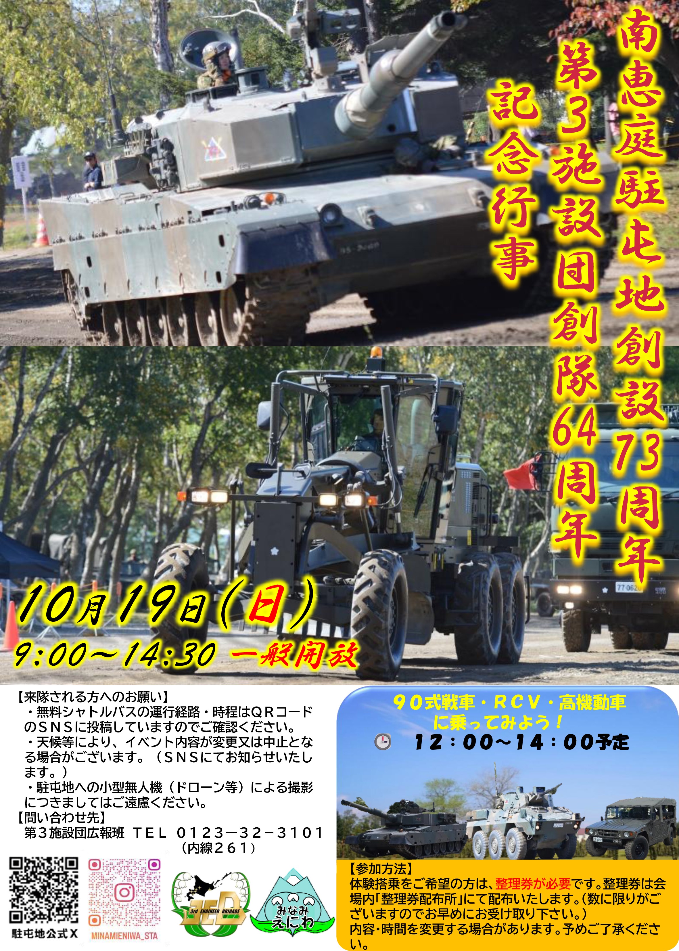 南恵庭駐屯地 創設73周年・第3施設団 創隊64周年記念行事(北海道)