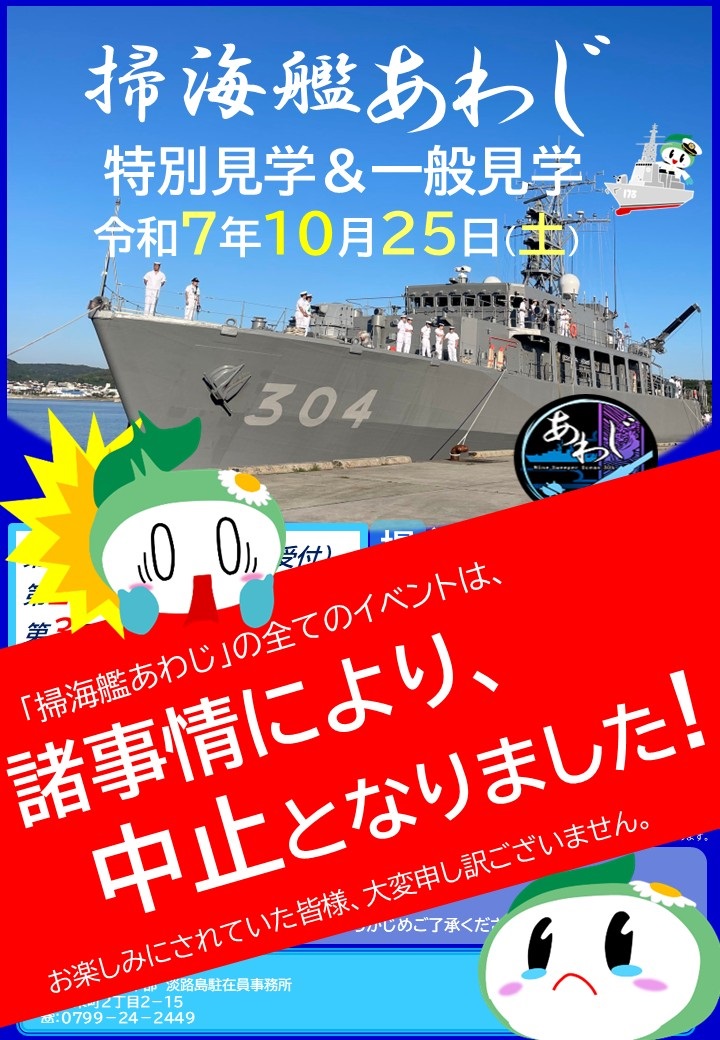 海上自衛隊 掃海艇「はつしま」艦艇見学会 in 河下港 島根地方協力本部(島根県) - 2025年10月25日(土) → 開催中止海上自衛隊 掃海艦「あわじ」一般公開&特別公開 in 淡路市 津名港 兵庫地方協力本部(兵庫県)