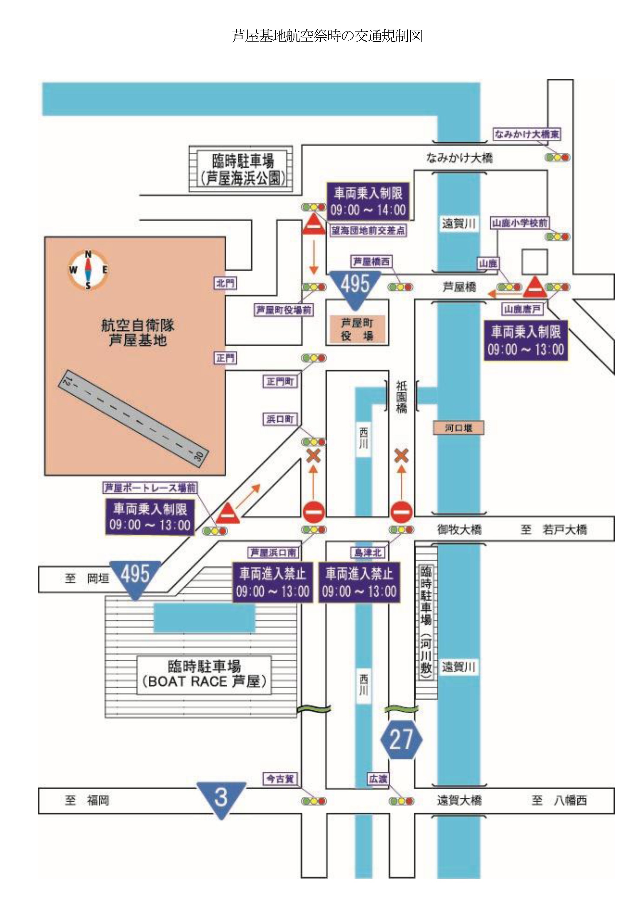 - 航空祭当日、芦屋基地周辺で交通規制が実施されます。