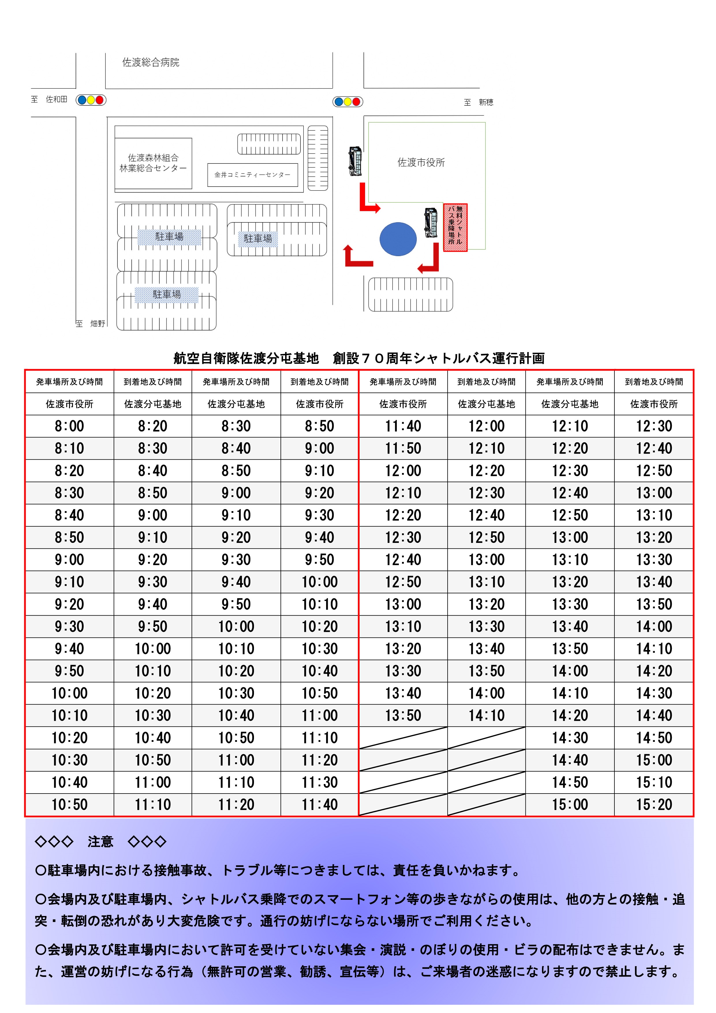 - 当日は「金井コミュニティセンター」~「佐渡分屯基地」まで無料シャトルバスが運行されます。