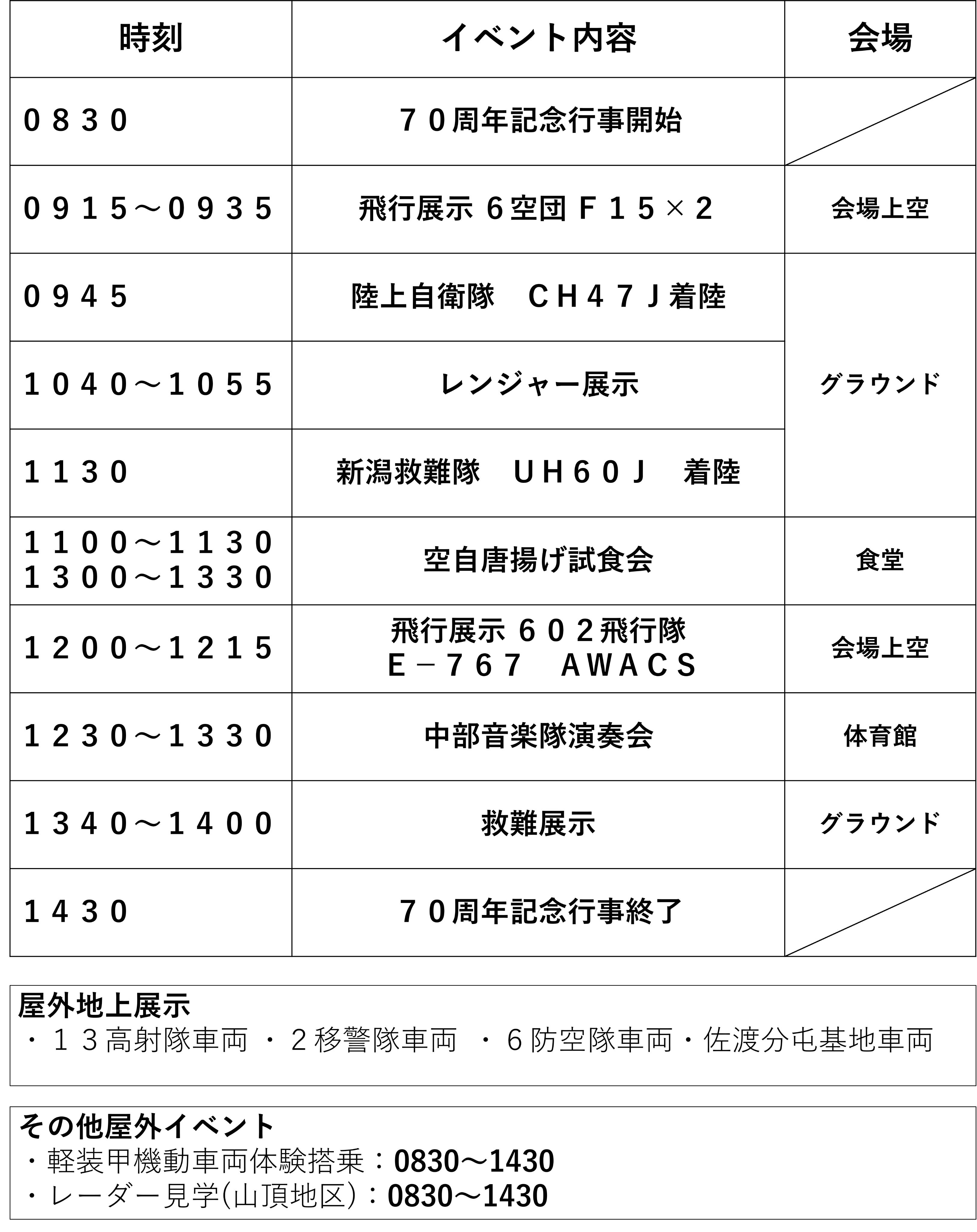 ■佐渡分屯基地 創設70周年記念行事:イベント内容