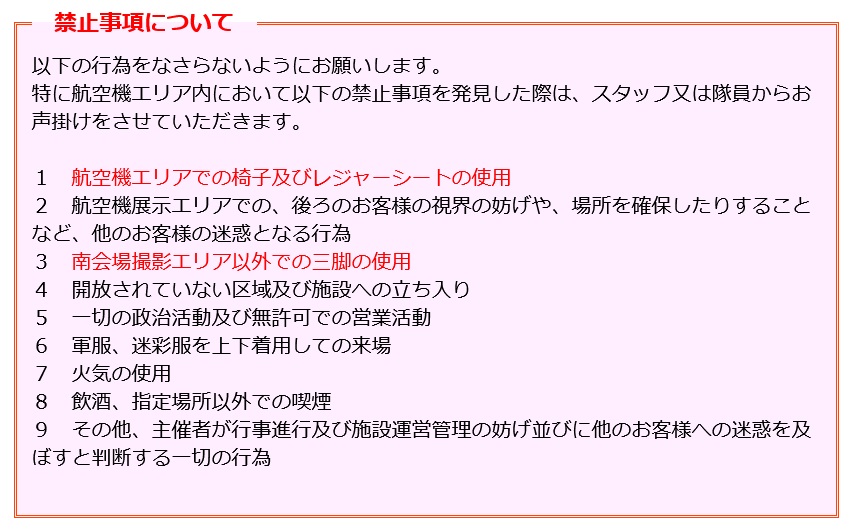 - ・航空機エリア(北会場)での椅子、レジャーの使用