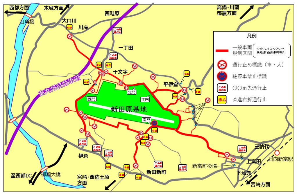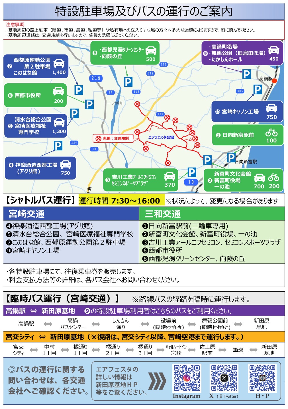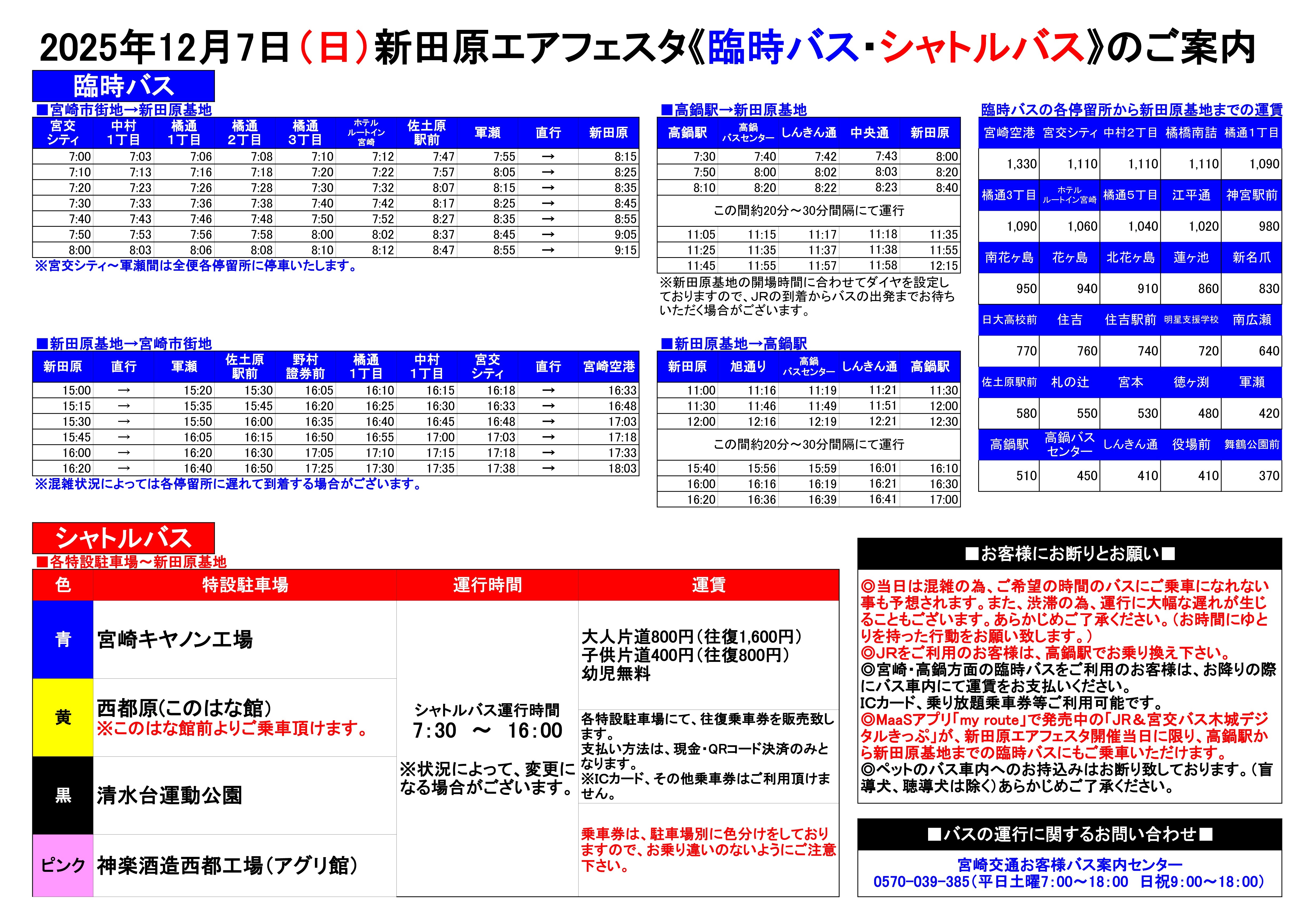 - 高鍋駅等から基地まで臨時バス(宮崎交通)が運行されます。