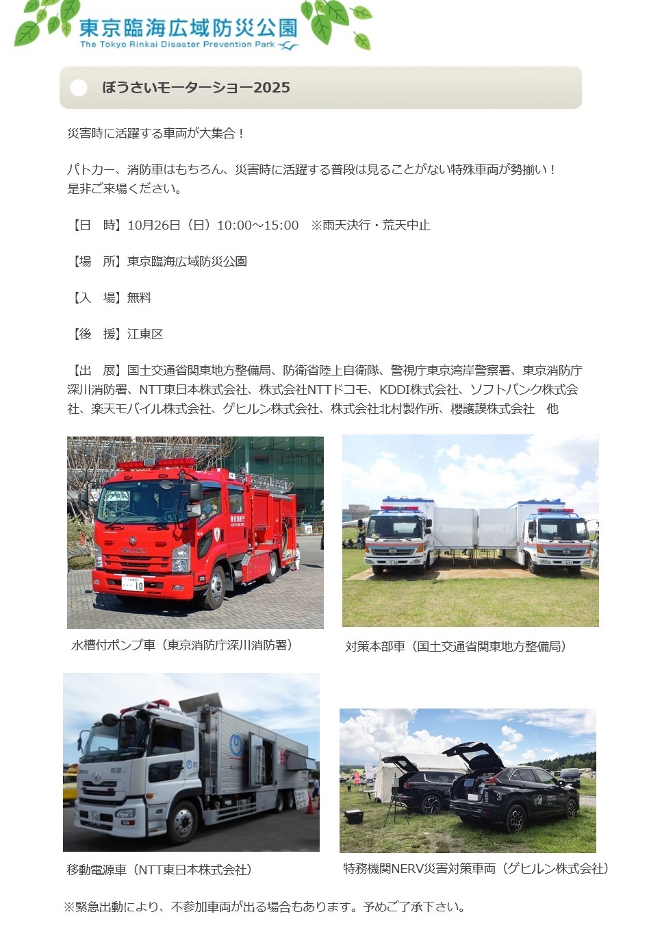 『ぼうさいモーターショー2025 in 東京臨海広域防災公園』について