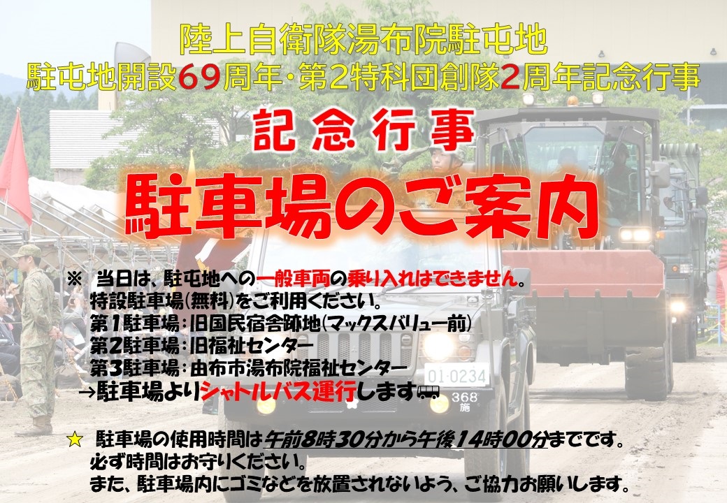 - ※特設駐車場から駐屯地までシャトルバスが運行されます。