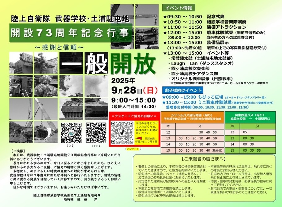 ■武器学校・土浦駐屯地 開設73周年記念行事:イベント内容