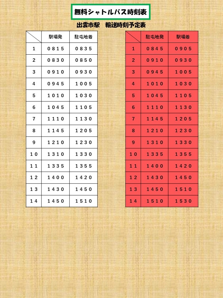 - ●当日は「JR出雲市駅」北口 ~駐屯地まで無料シャトルバスが運行されます。