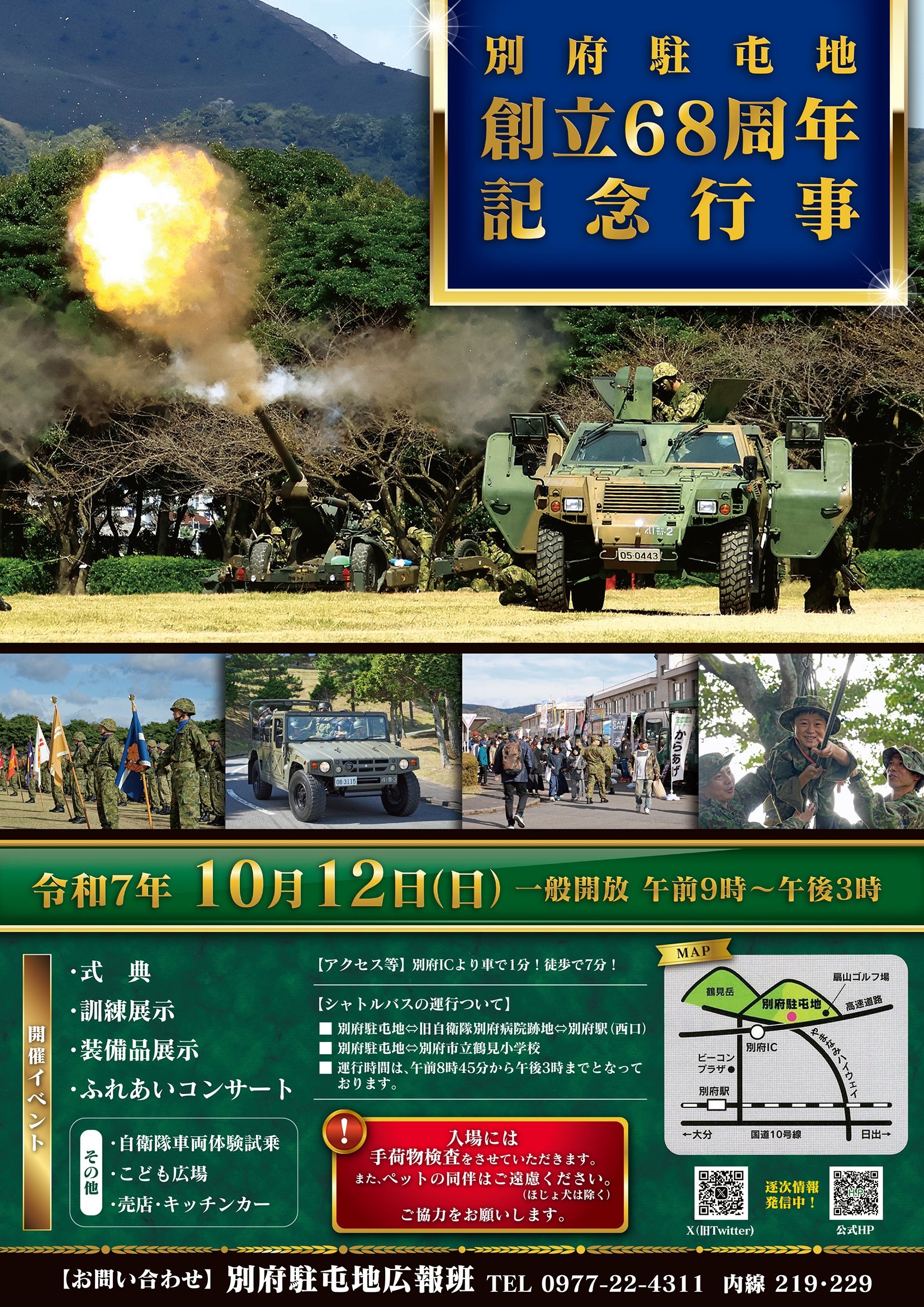 2025年10月12日(日)に、大分県 別府市にある 陸上自衛隊 別府駐屯地で「別府駐屯地 創立68周年記念行事」が実施されます。