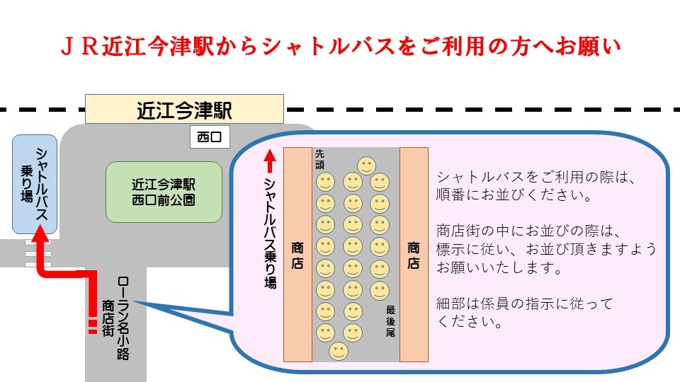 - ※シャトルバスを利用の方は順番にお並びください(標示に従って並んでください)。