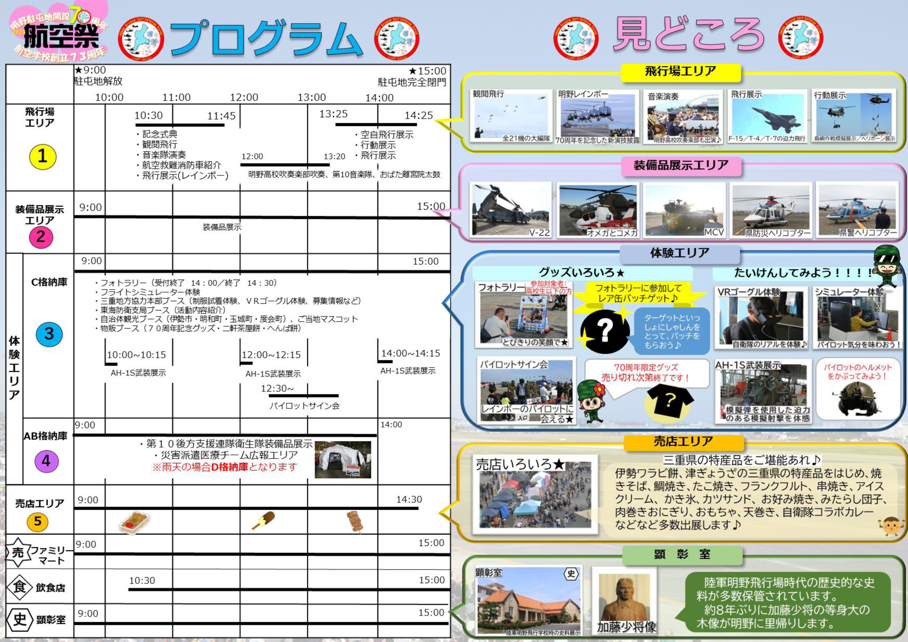 ■明野駐屯地 開設70周年・航空学校 創立73周年記念行事:イベント内容
