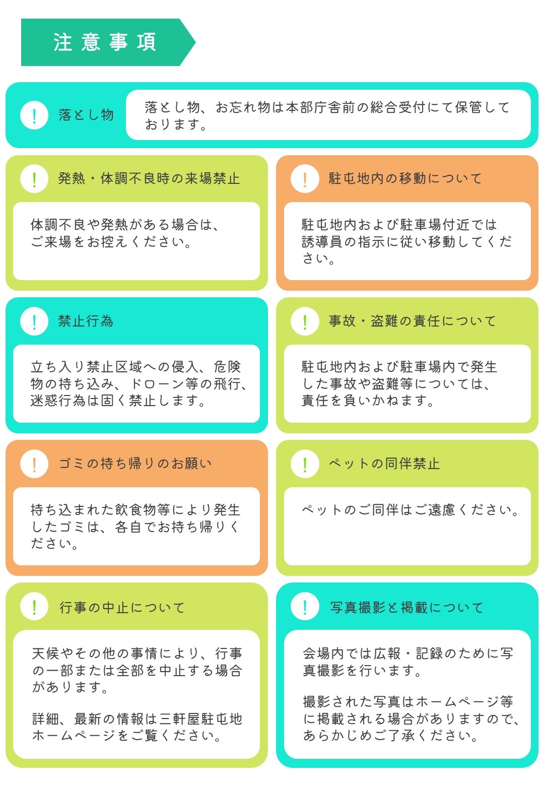 - ※無人航空機(ドローン等)の持ち込みや駐屯地上空での飛行は禁止です。