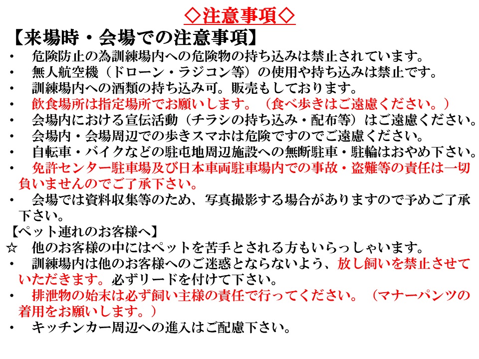下記、注意事項をご確認の上でご来場ください。