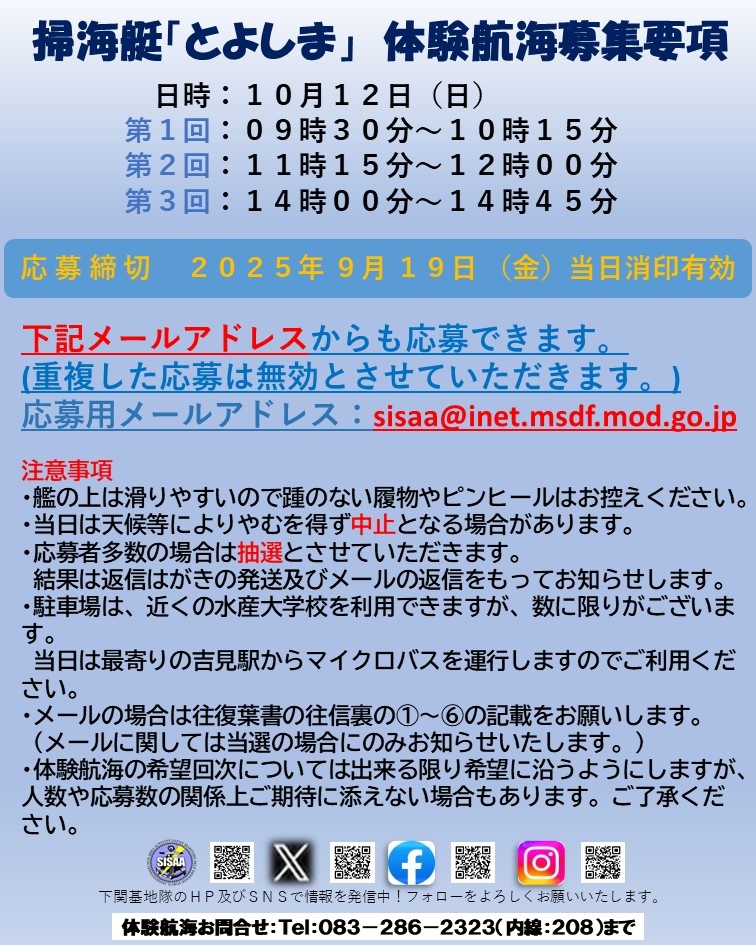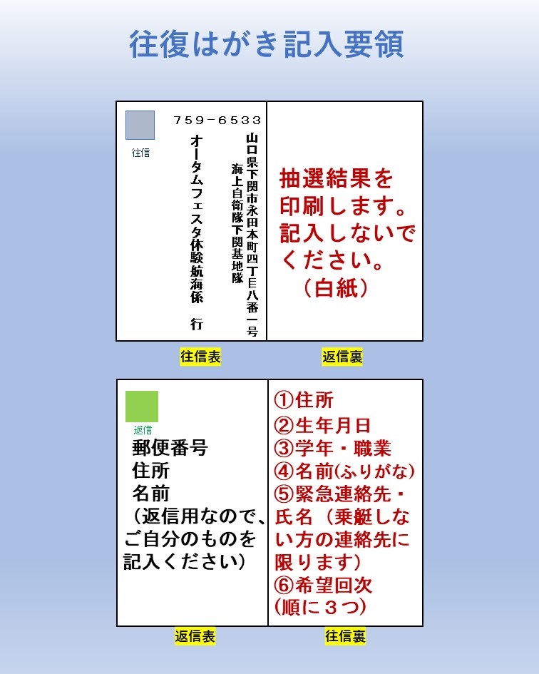 - 下関基地隊への メール 又は 往復ハガキによる応募