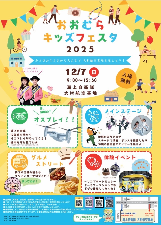 2025年12月7日(日)に、長崎県 大村市 今津町にある 海上自衛隊 大村航空基地で「おおむらキッズフェスタ2025」が開催されます。