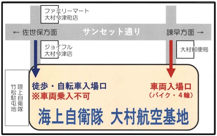 - ※基地外柵フェンス周辺での車両を駐停車しての撮影・見学は、周辺の交通の妨げとなりますのでご遠慮ください。