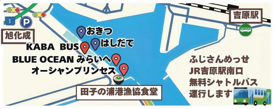 - JR東海道本線/岳南鉄道「JR吉原駅」南口 ~ 徒歩約30分(約2.2km)
