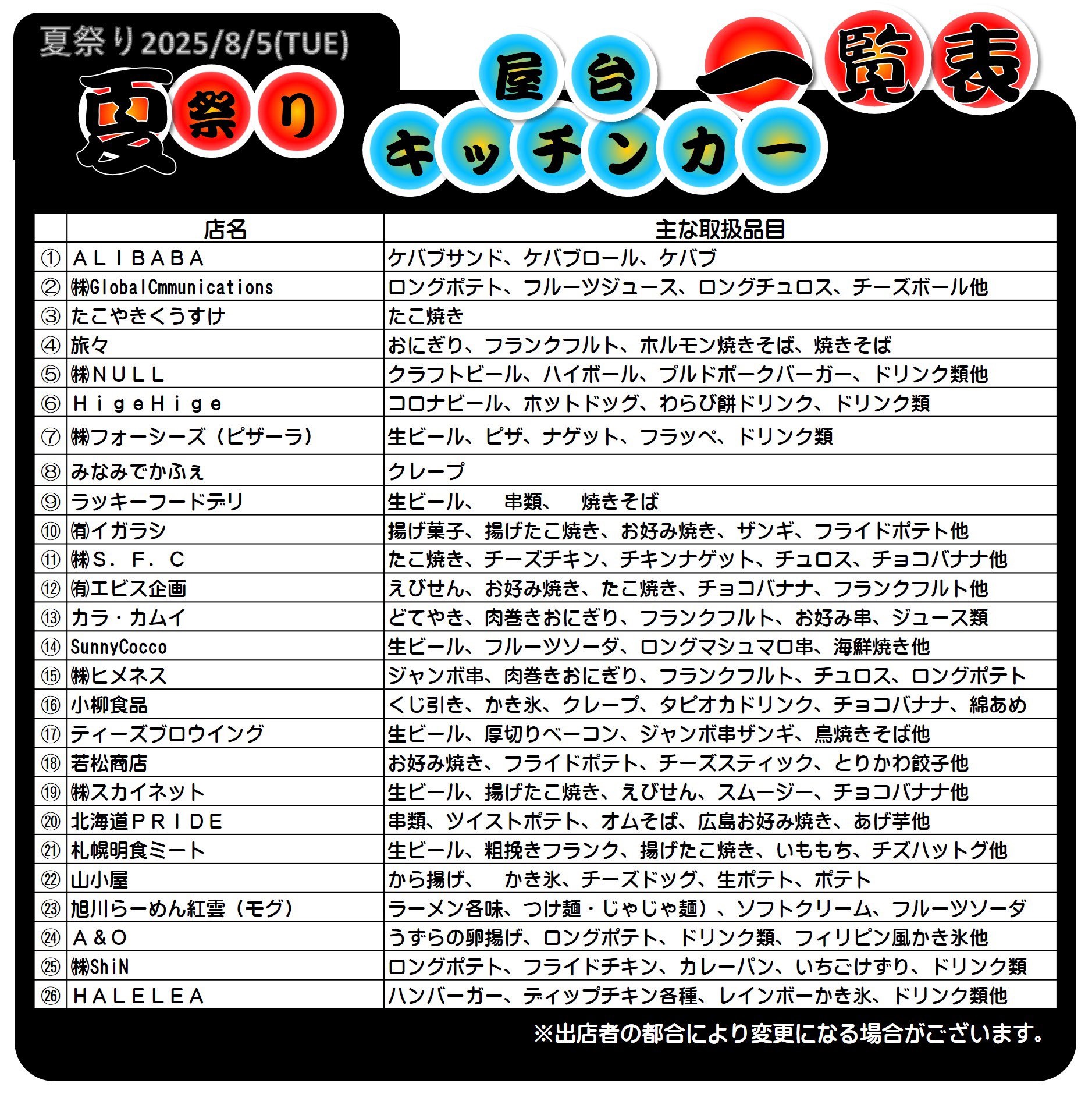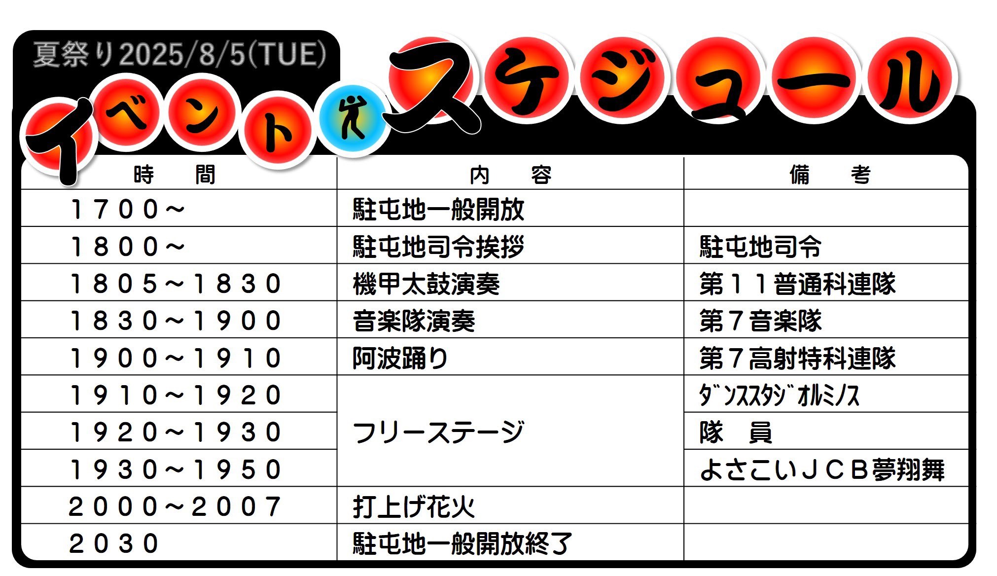 ■令和7年度 東千歳駐屯地 夏祭り:イベント内容