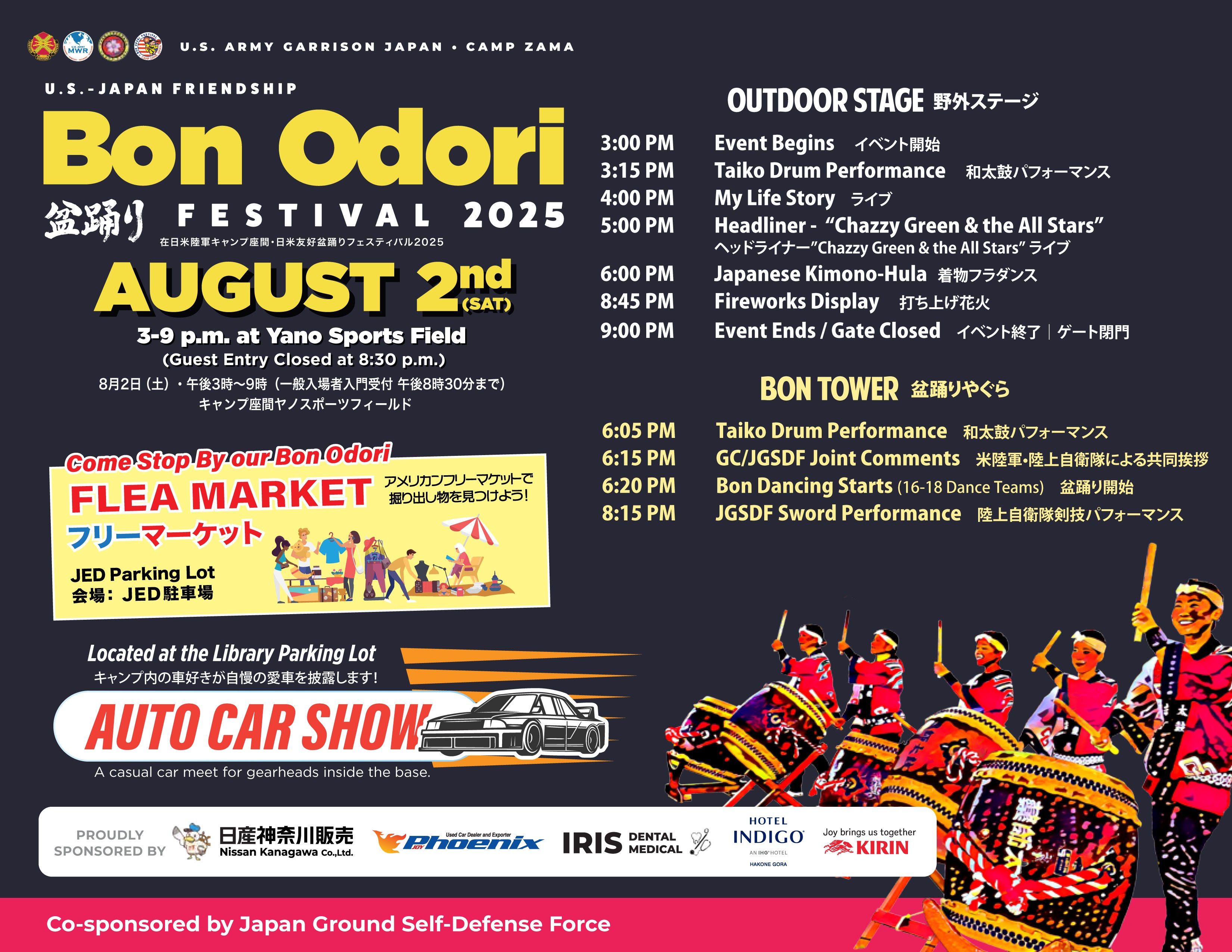 2025年8月2日(土)に、神奈川県 相模原市・座間市に所在する在日米陸軍 キャンプ座間で「キャンプ座間 日米親善 盆踊りフェスティバル2025」が開催されます。