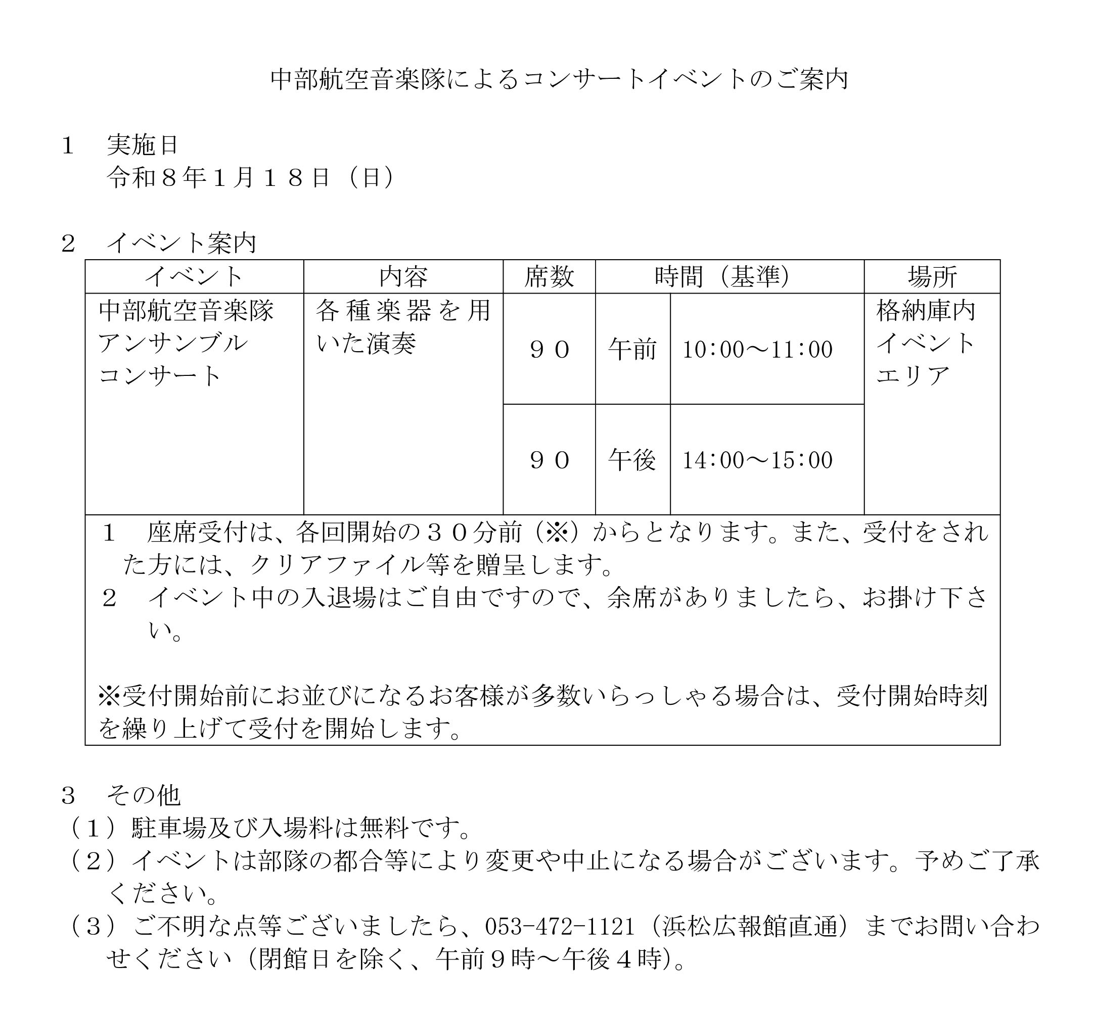 - ■中部航空音楽隊 アンサンブルコンサート:イベント内容