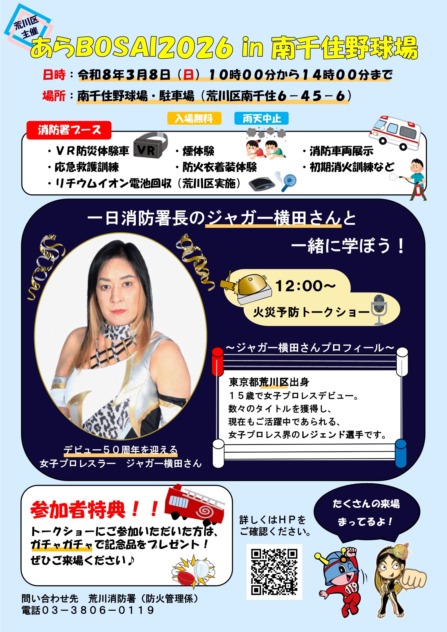 2026年3月8日(日)に、東京都 荒川区 南千住にある 南千住野球場で「あらBOSAI2026 in 南千住野球場」が開催されます。