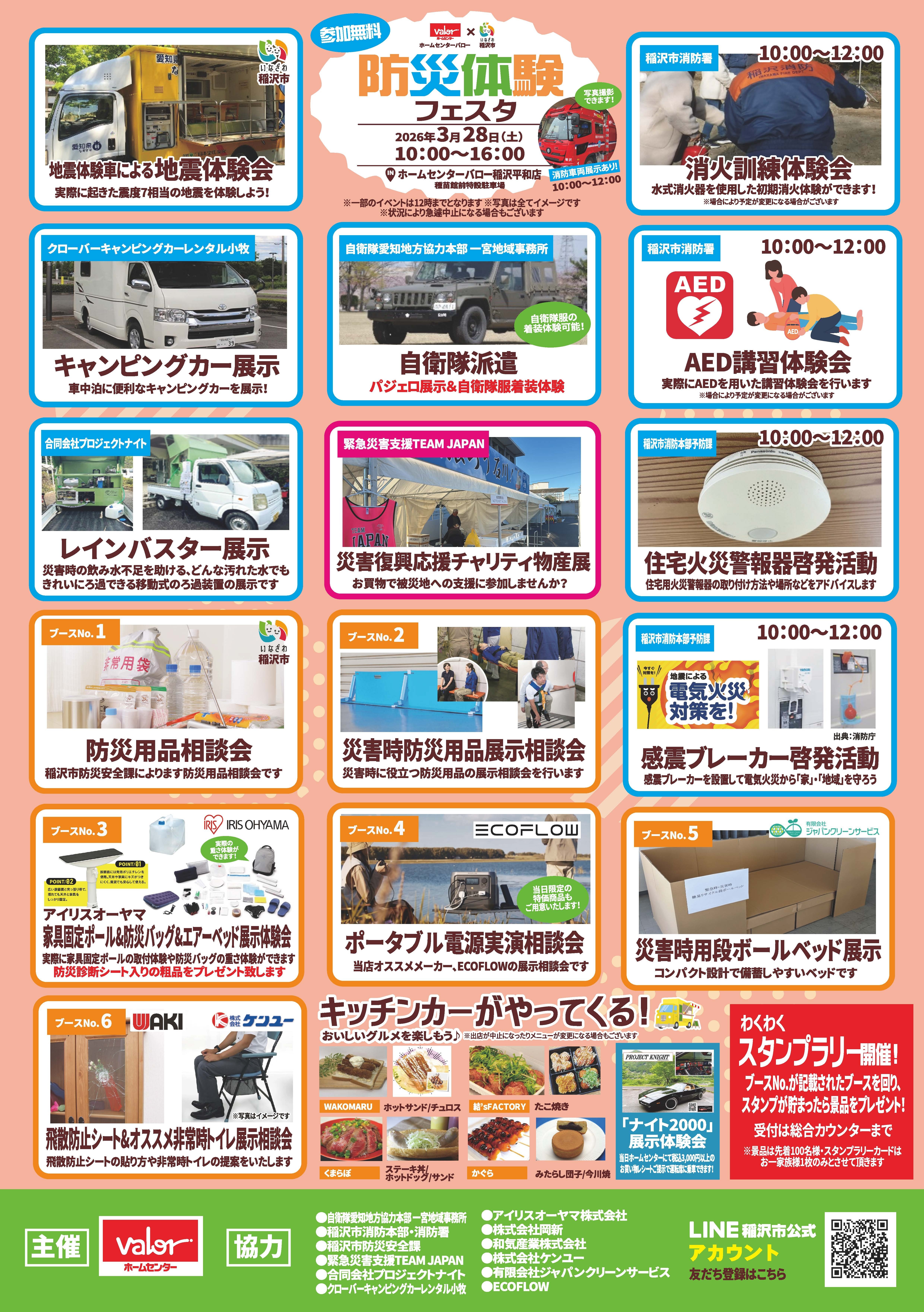 2026年3月28日(土)に、愛知県 稲沢市 平和町にある ホームセンターバロー メガストア稲沢平和店で「防災体験フェスタ2026 in ホームセンターバロー稲沢平和」が開催されます。