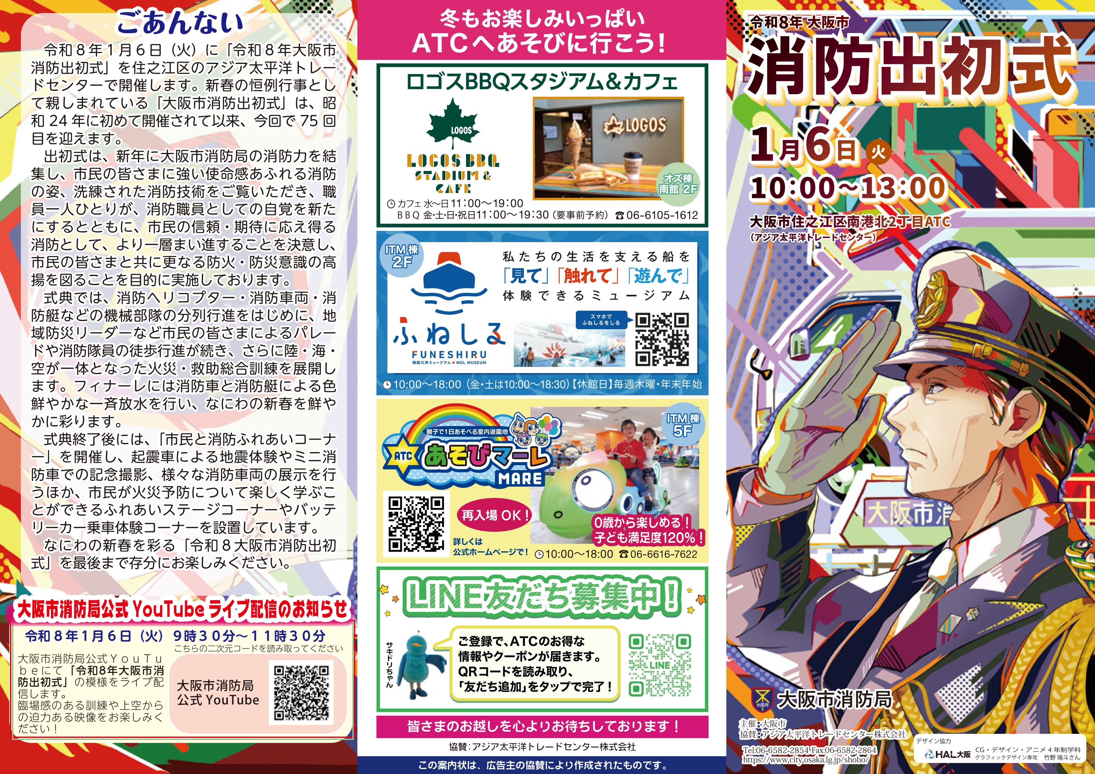 2026年1月6日(火)に、大阪府 大阪市 住之江区にある アジア太平洋トレードセンター(ATC)オズ岸壁周辺で「令和8年 大阪市消防出初式」が開催されます。