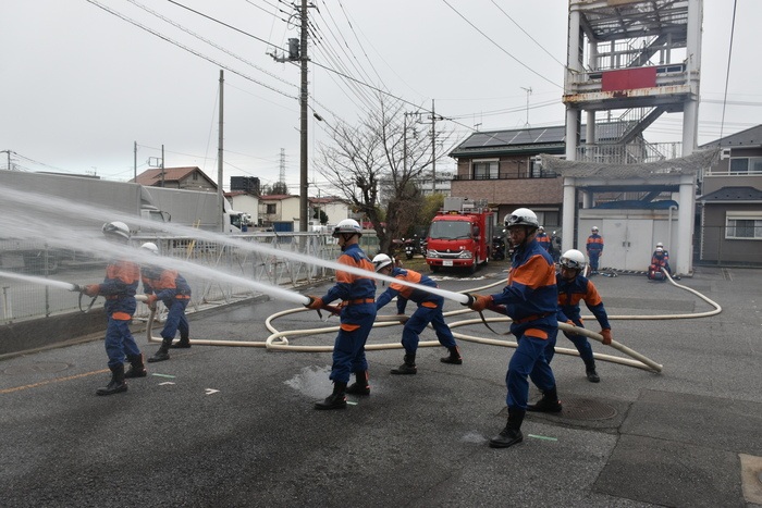 出初式では、姿勢・服装点検、消防対応訓練、放水訓練などが行われますので、是非ご来場ください。