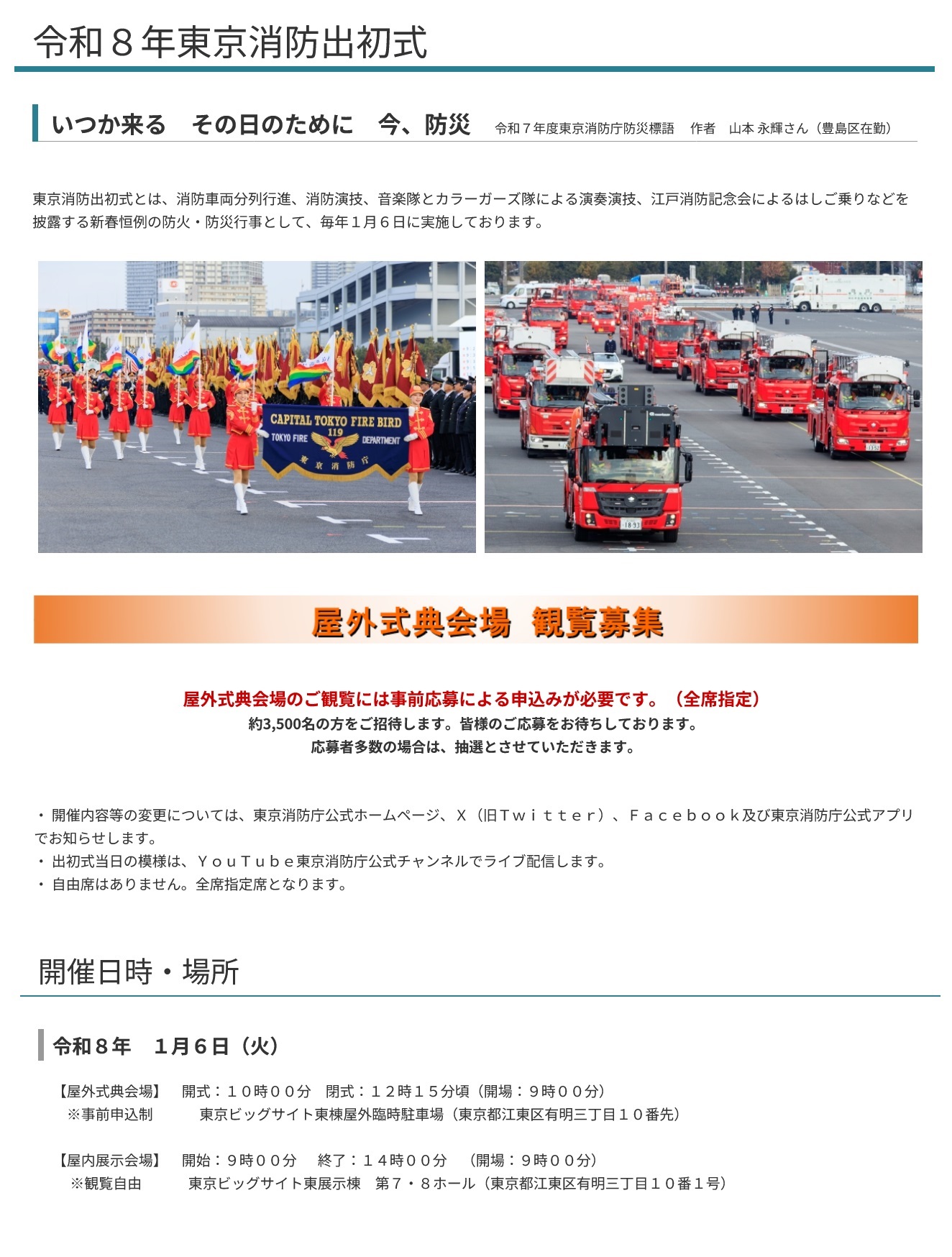 「東京消防庁公式HP:令和8年 東京消防出初式」詳細ページ内にある