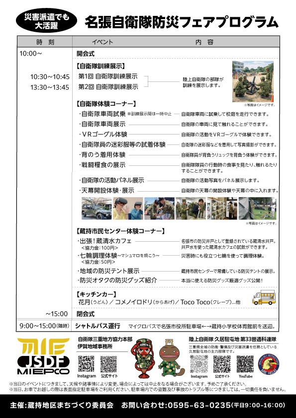 ■名張自衛隊防災フェア2026 in 蔵持小学校:イベント内容