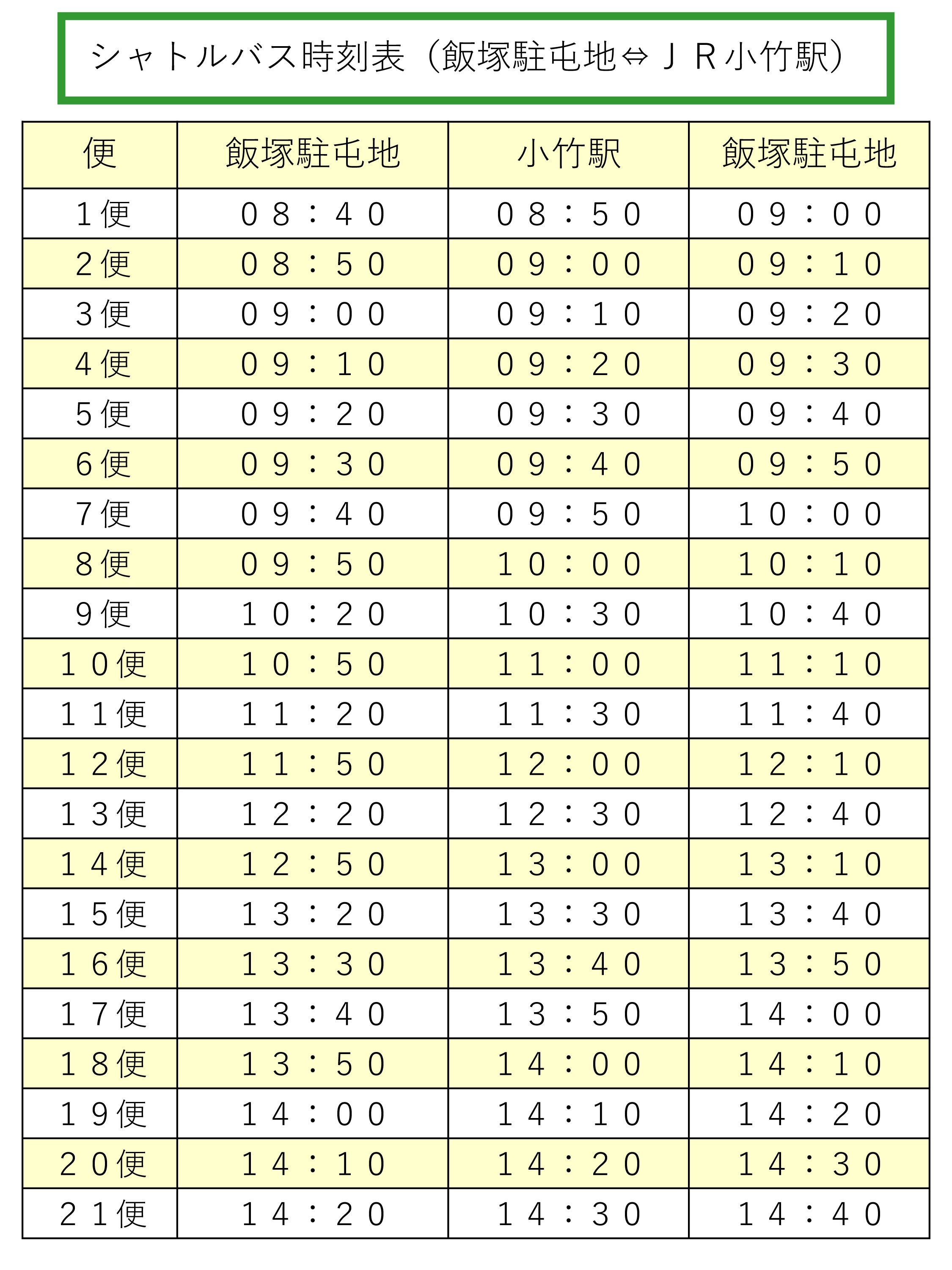 - ●当日は「小竹駅」~「飯塚駐屯地」までシャトルバスが運行されます。