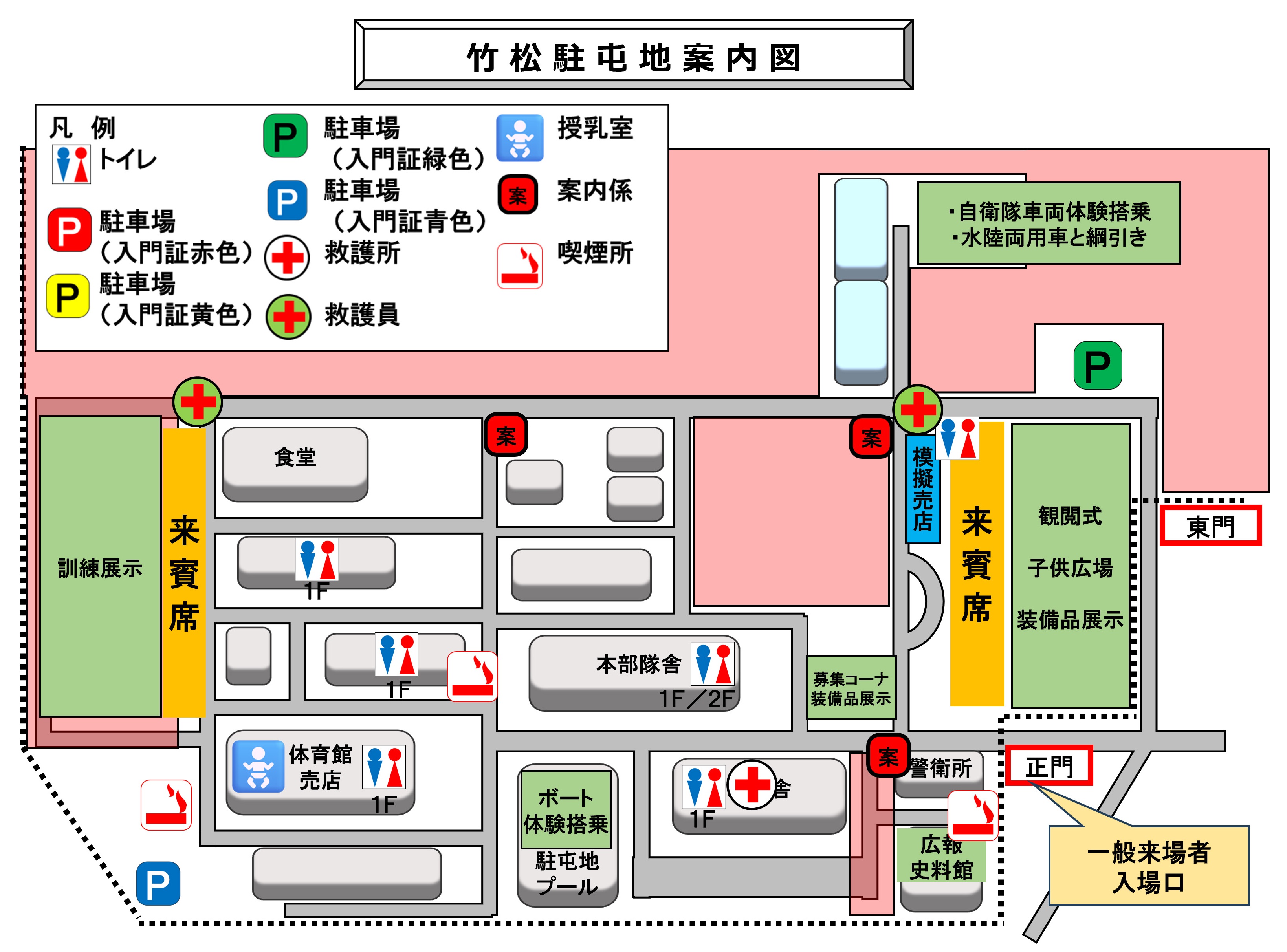 - ※当日は駐屯地外に一般来場者駐車場が準備されています(駐車場から駐屯地までシャトルバスが運行されます)。
