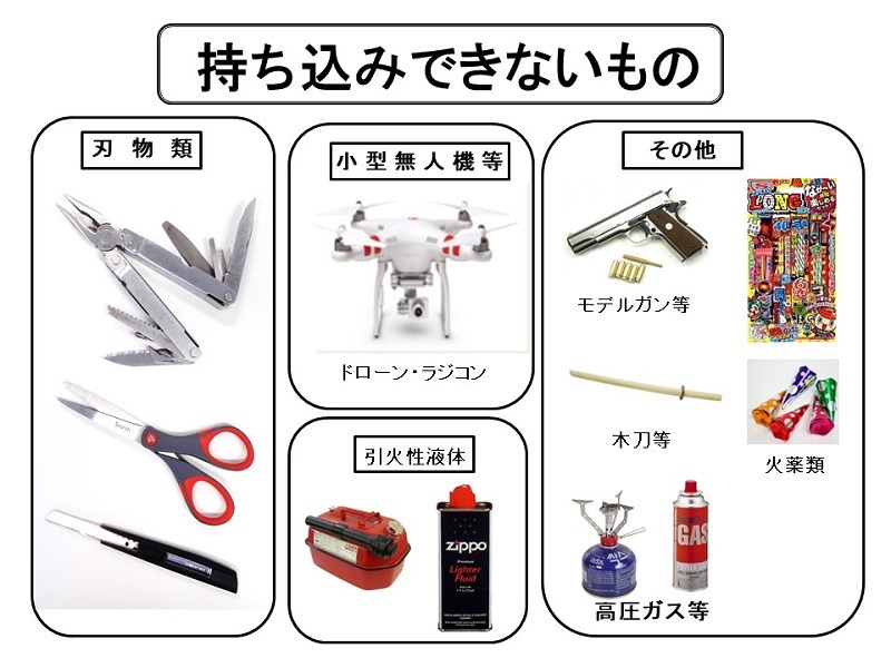 - ※危険物(刃物、引火物等)の持ち込みはできません。