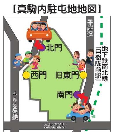 - ※徒歩の方は「西門」又は「旧東門」から入場してください。