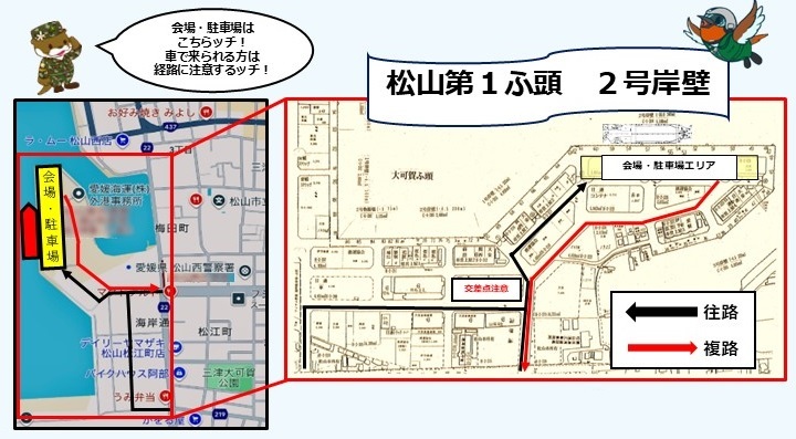 - ※会場に駐車場エリアが準備されていますので、自動車で来場の方は経路にご注意ください。