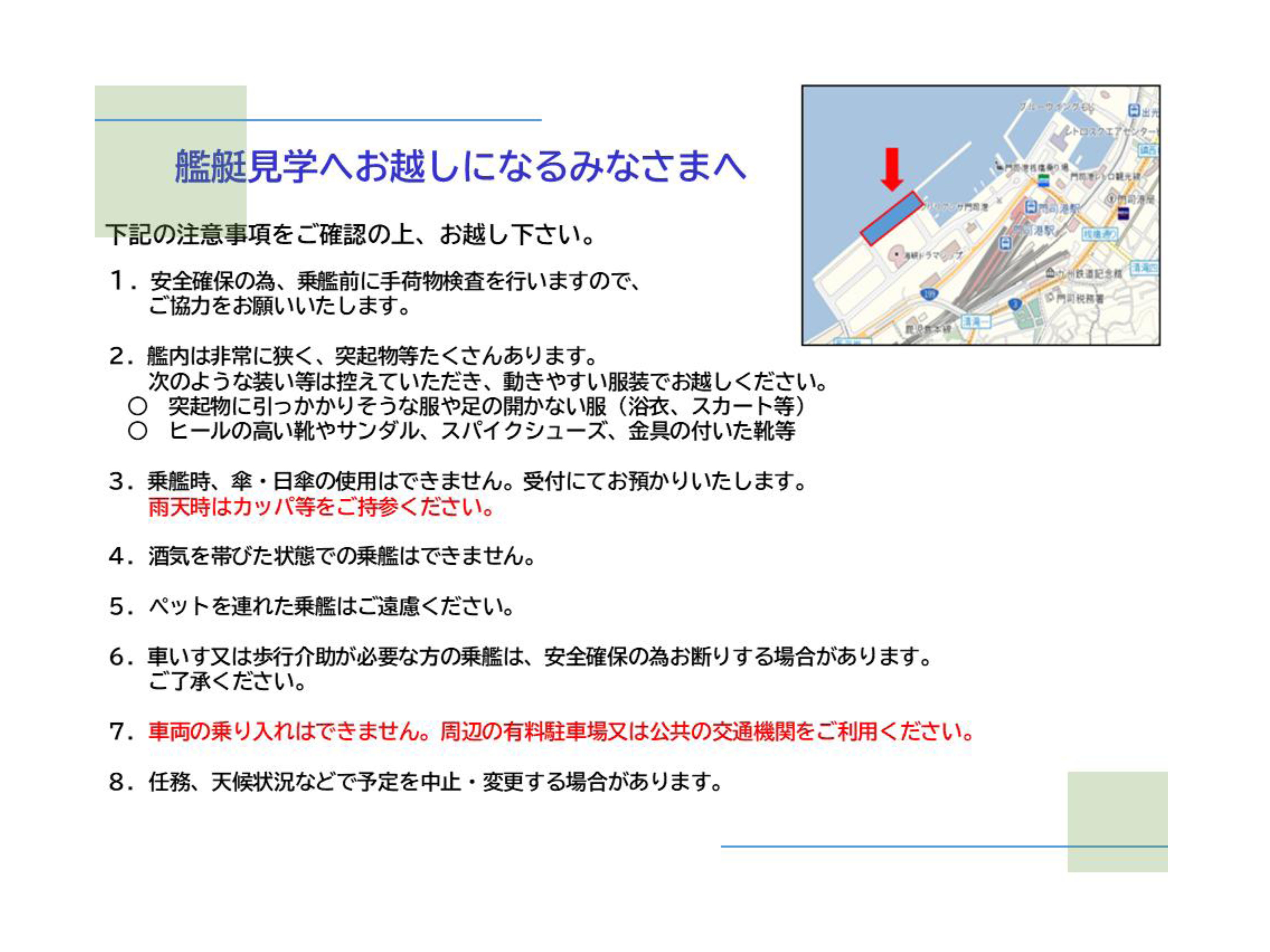 - 【乗艦見学時の注意事項】