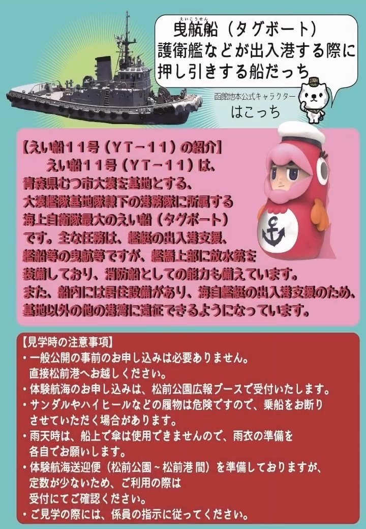 ■海上自衛隊 曳船11号 一般公開&体験航海 in 松前港:イベント内容