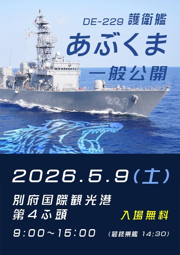 2026年5月9日(土)に、大分県 別府市にある 別府国際観光港 第4埠頭で、海上自衛隊 護衛艦「あぶくま」の一般公開が実施されます。