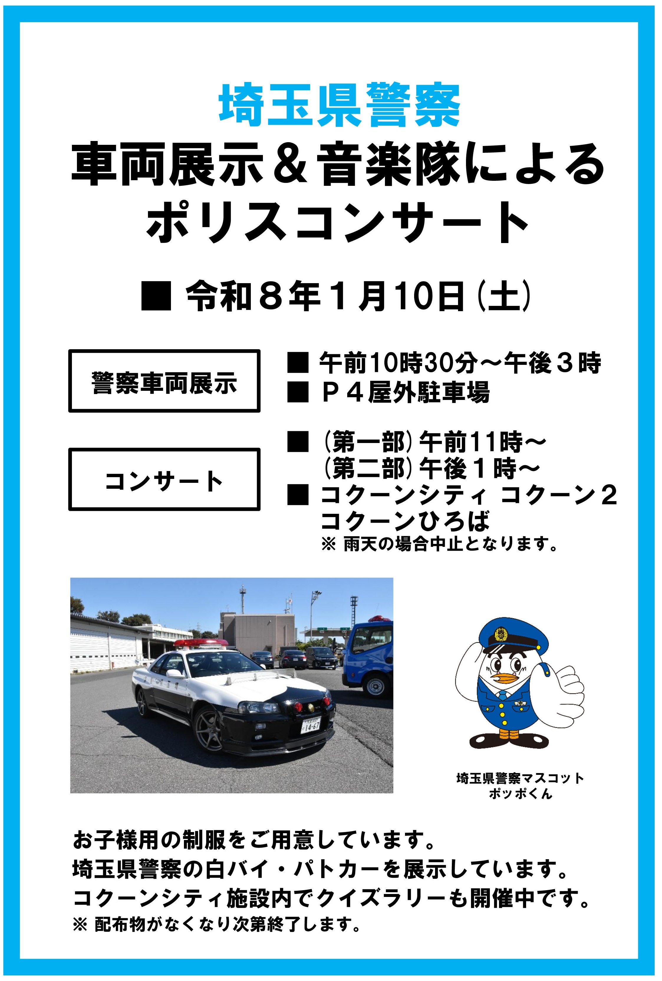 2026年1月10日(土)に、埼玉県 さいたま市 大宮区にある コクーンシティで「110番通報適切利用キャンペーン2026 in コクーンシティ」が開催されます。