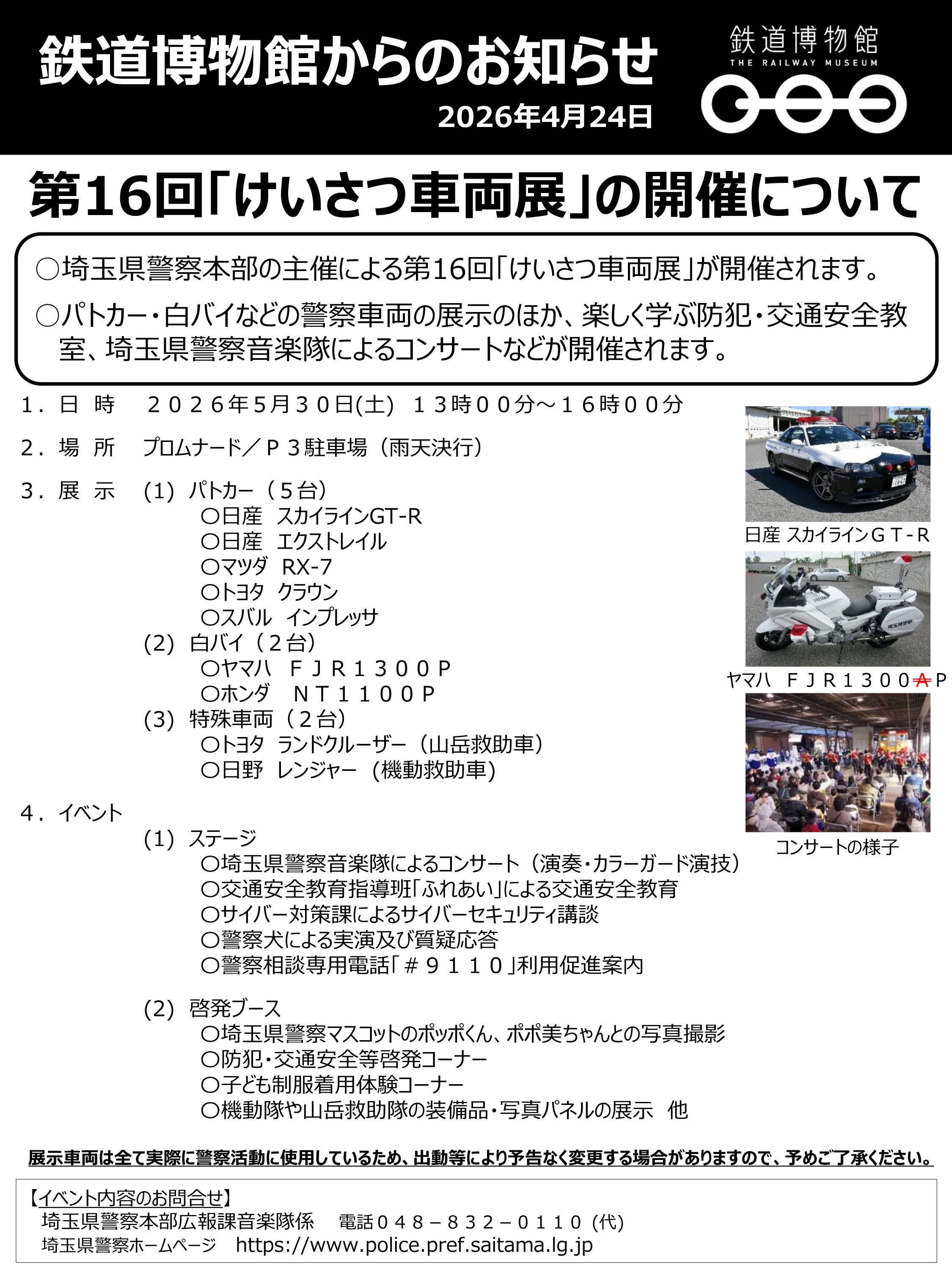 『第16回 埼玉県警察 けいさつ車両展 in 鉄道博物館』について